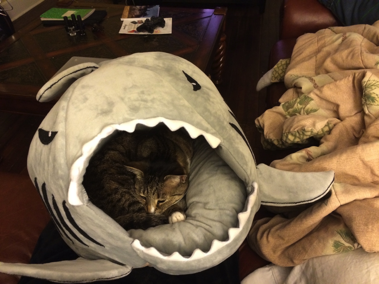 Well, the makers in China aren’t too creative with their names… http://www.amazon.com/gp/product/B00DZITYGU …I think it’s either “Shark bed”, “Cave bed”, “Gray shark bed”, or “Gray cave bed”. Maybe “Gray shark cave bed”.