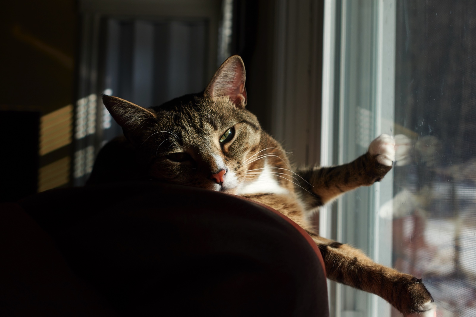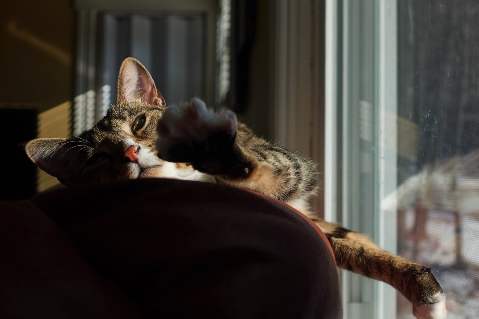 It’s slipping Bob! The cat is sliding down!