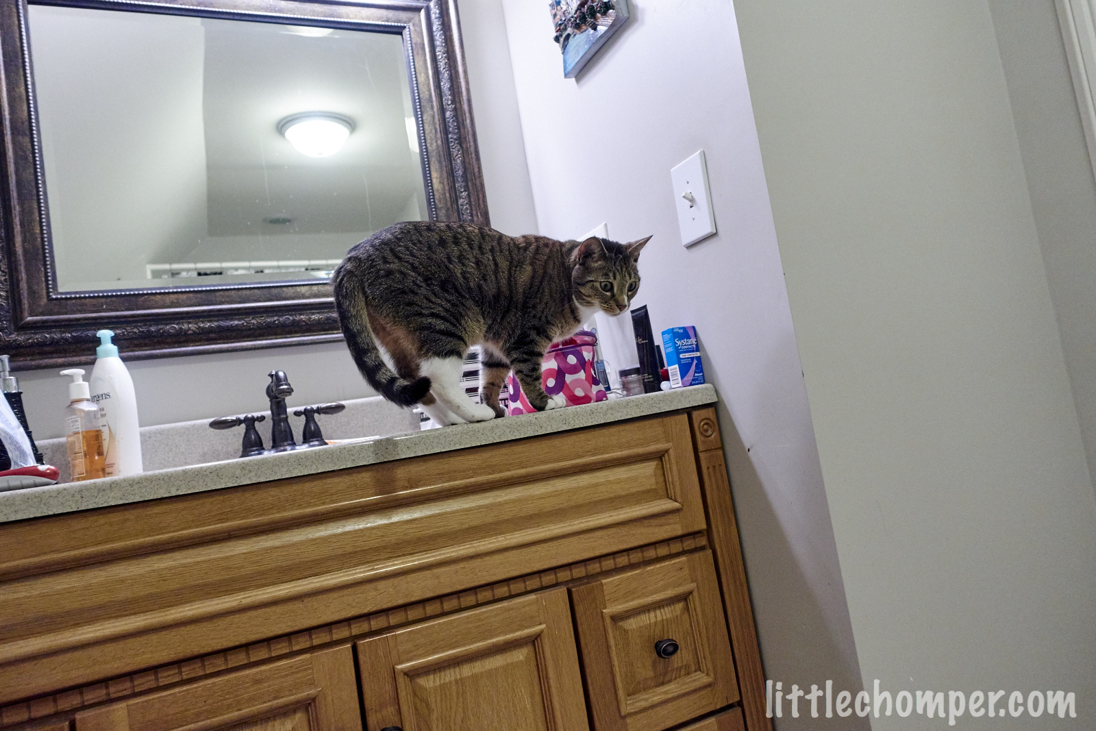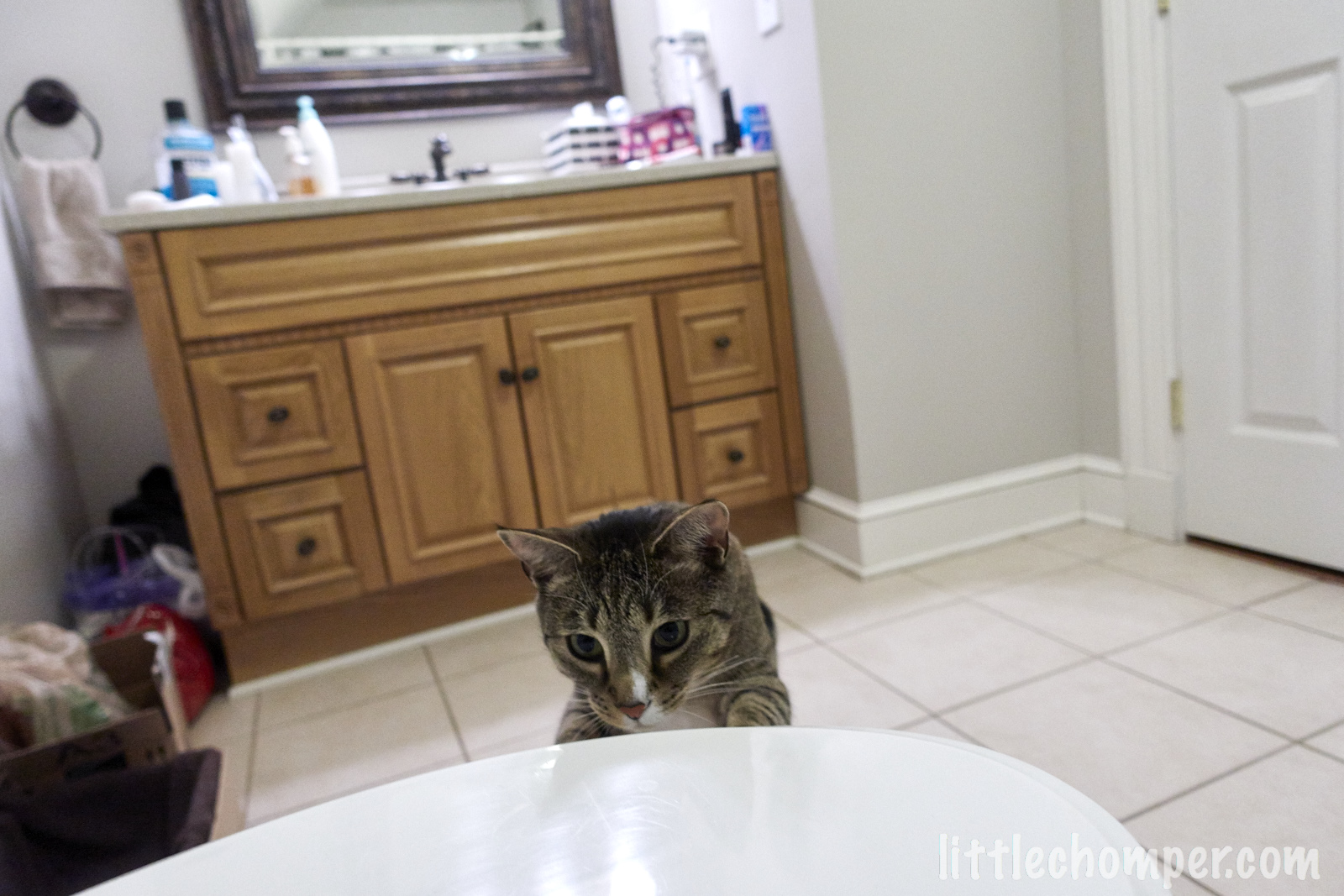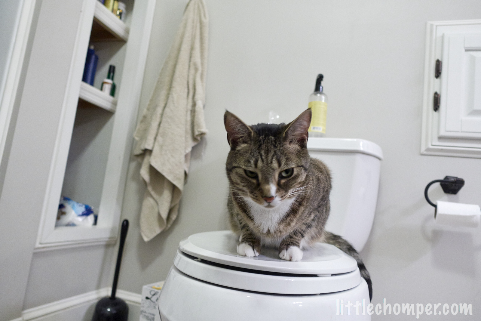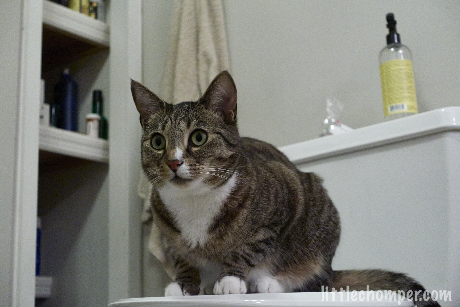 Luna does usually seem more content in a bathroom than I’d expect. Within a minute of the door swinging shut, she’s asleep. It’s like the bathroom has auto-shut-off lights, except it’s a cat.