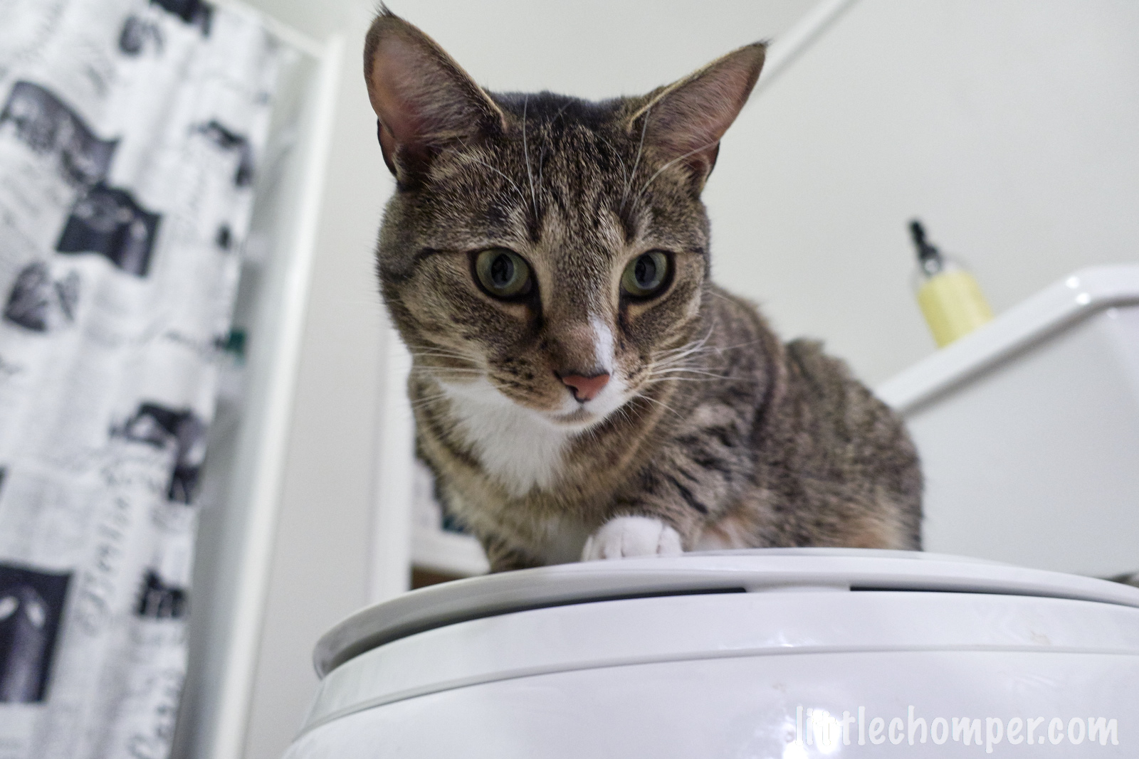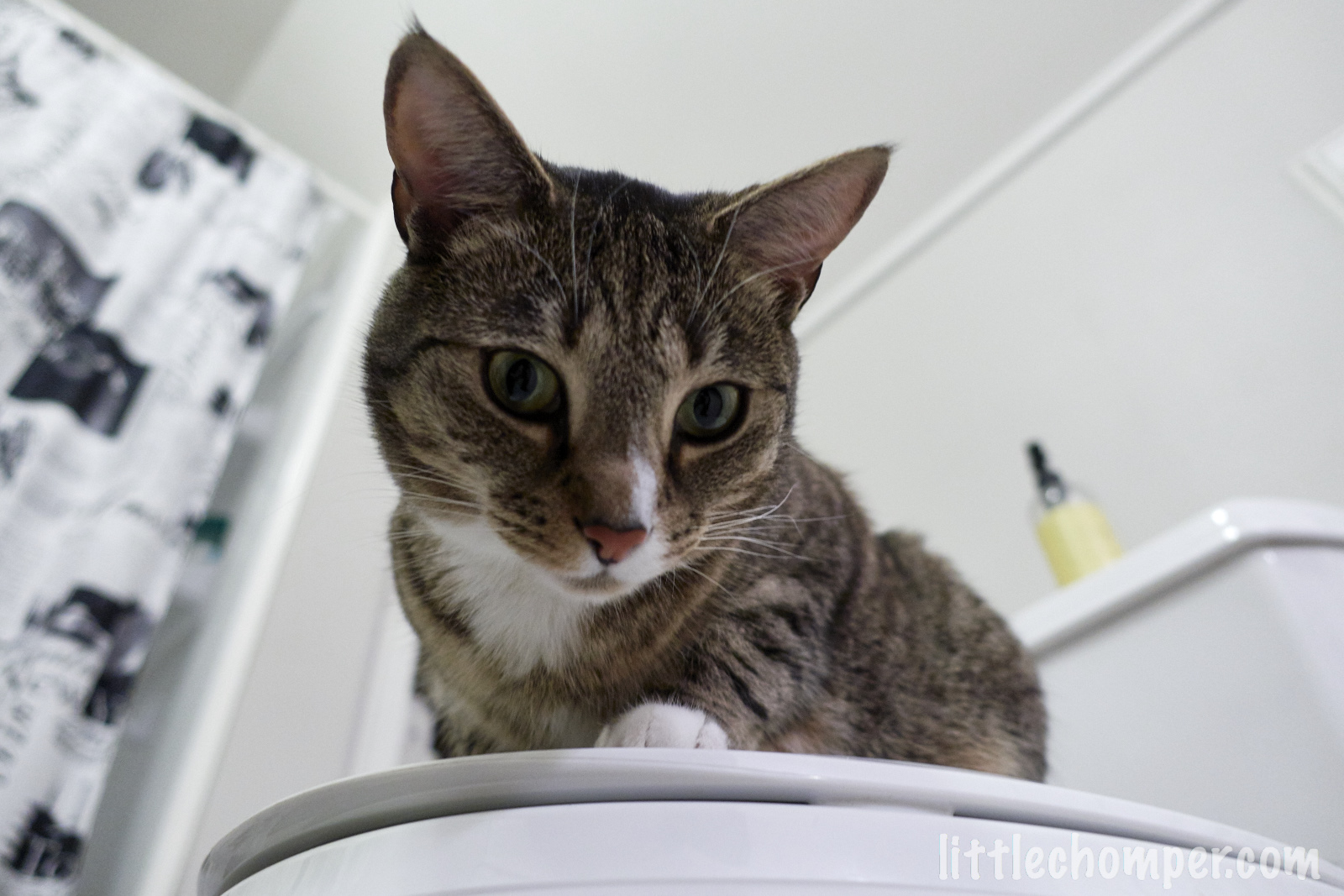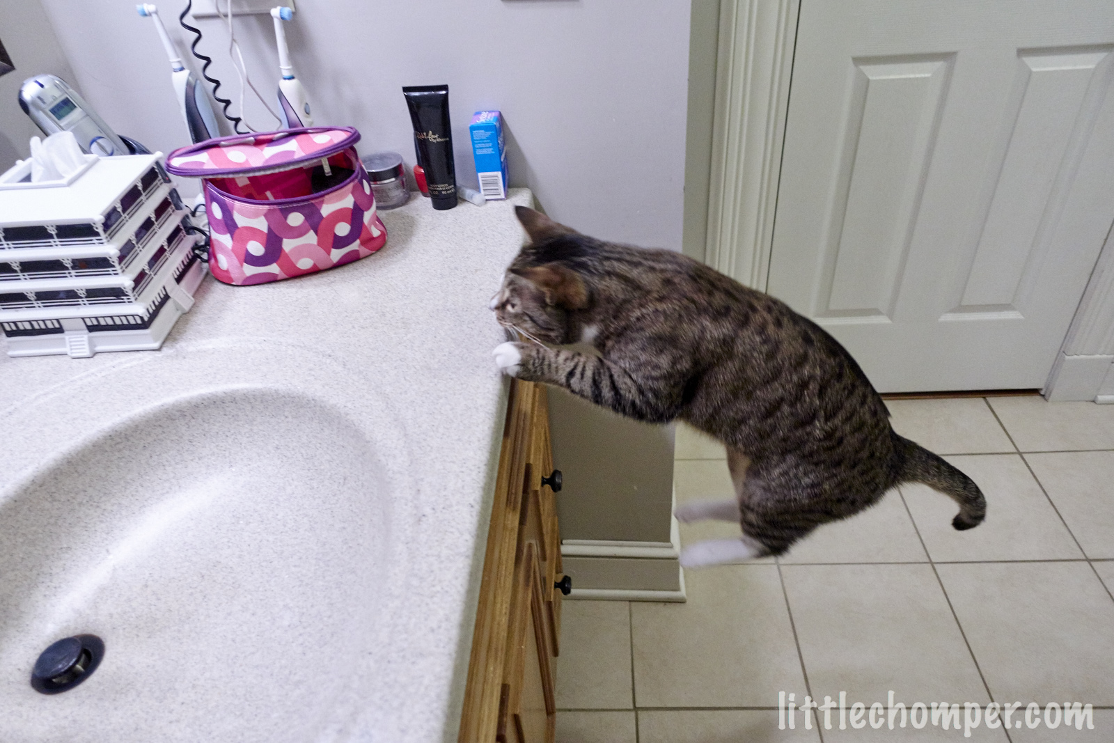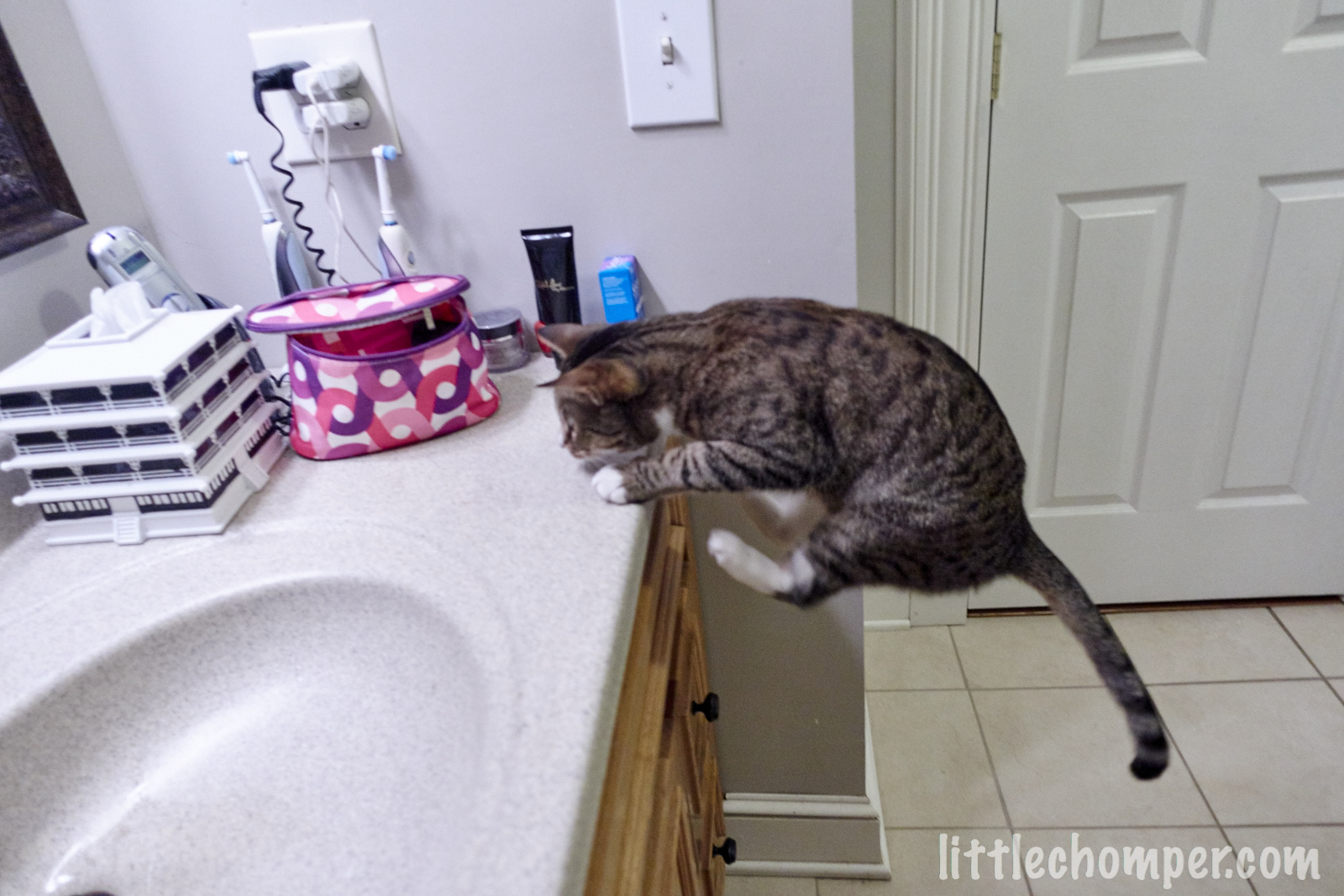 Luna does usually seem more content in a bathroom than I’d expect. Within a minute of the door swinging shut, she’s asleep. It’s like the bathroom has auto-shut-off lights, except it’s a cat.