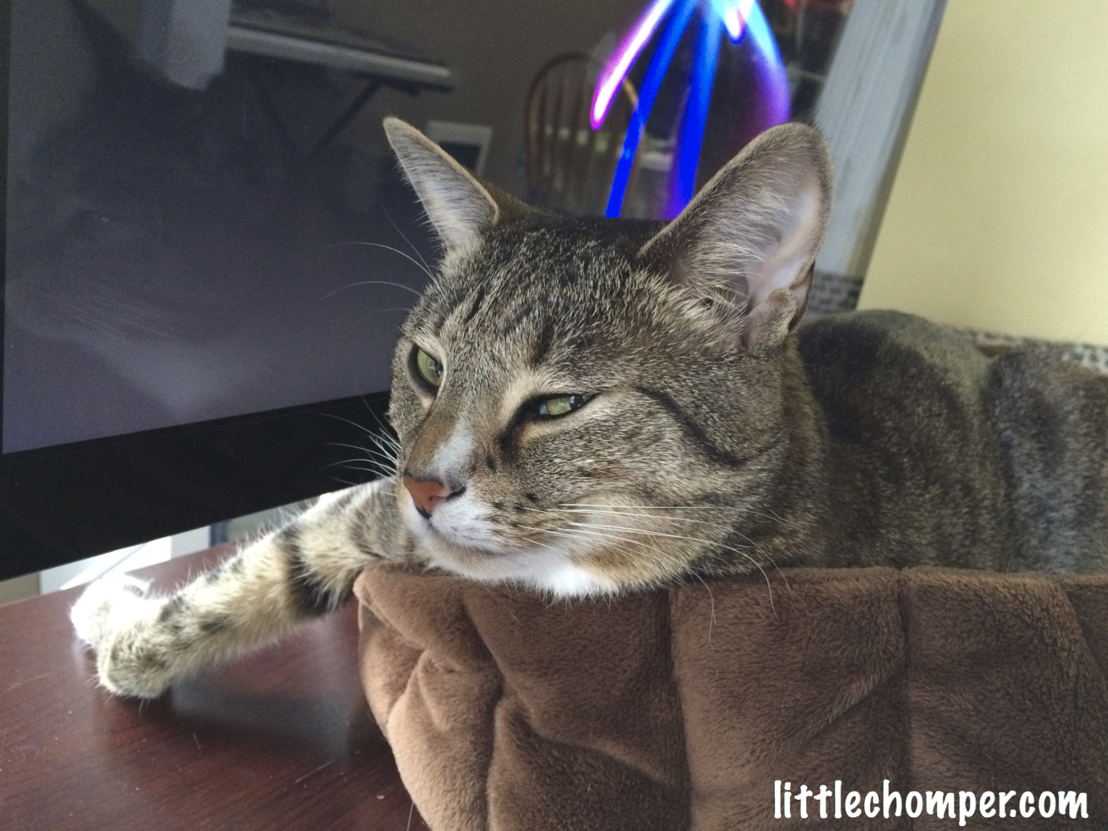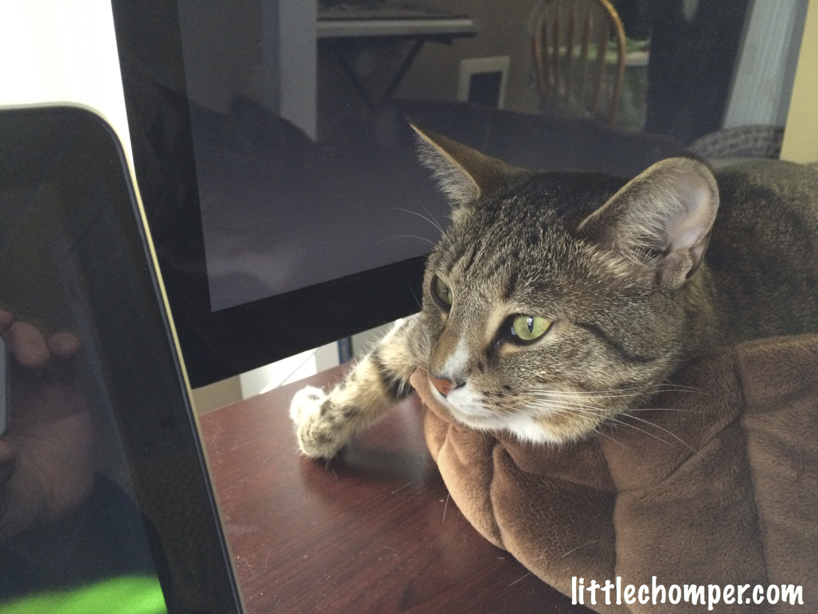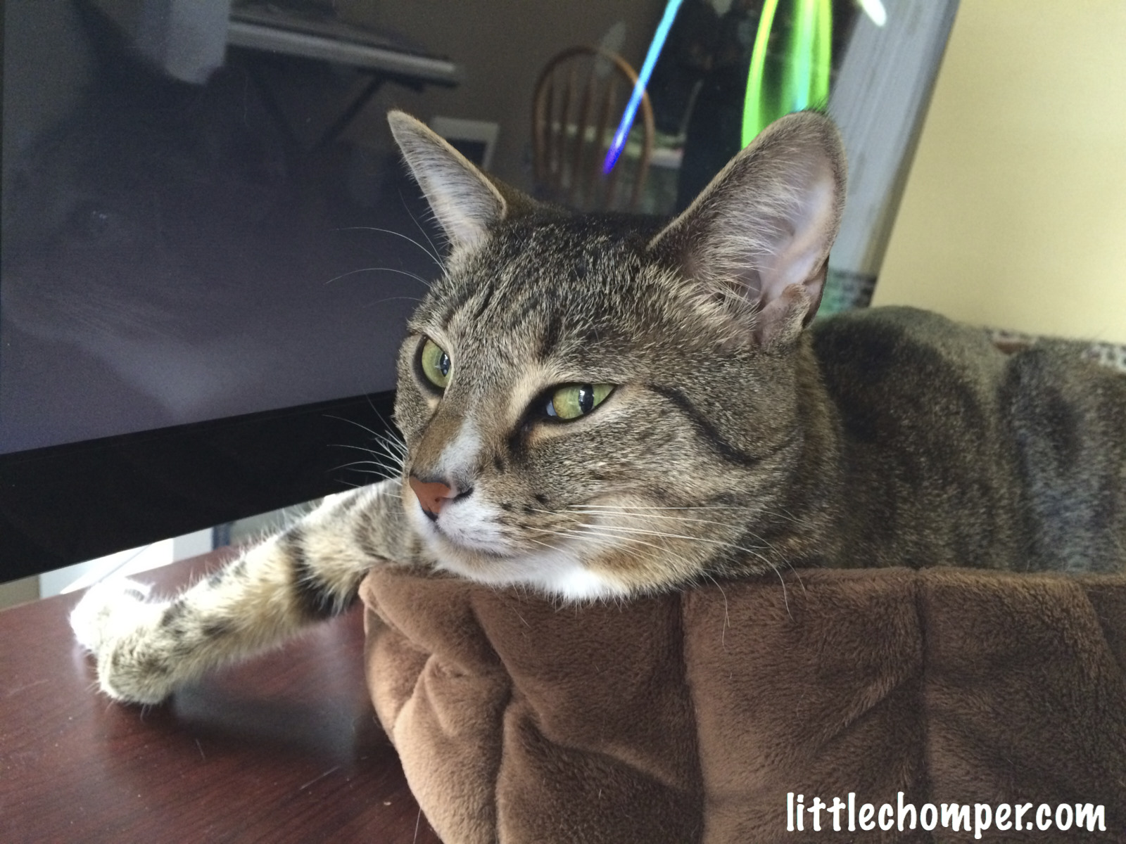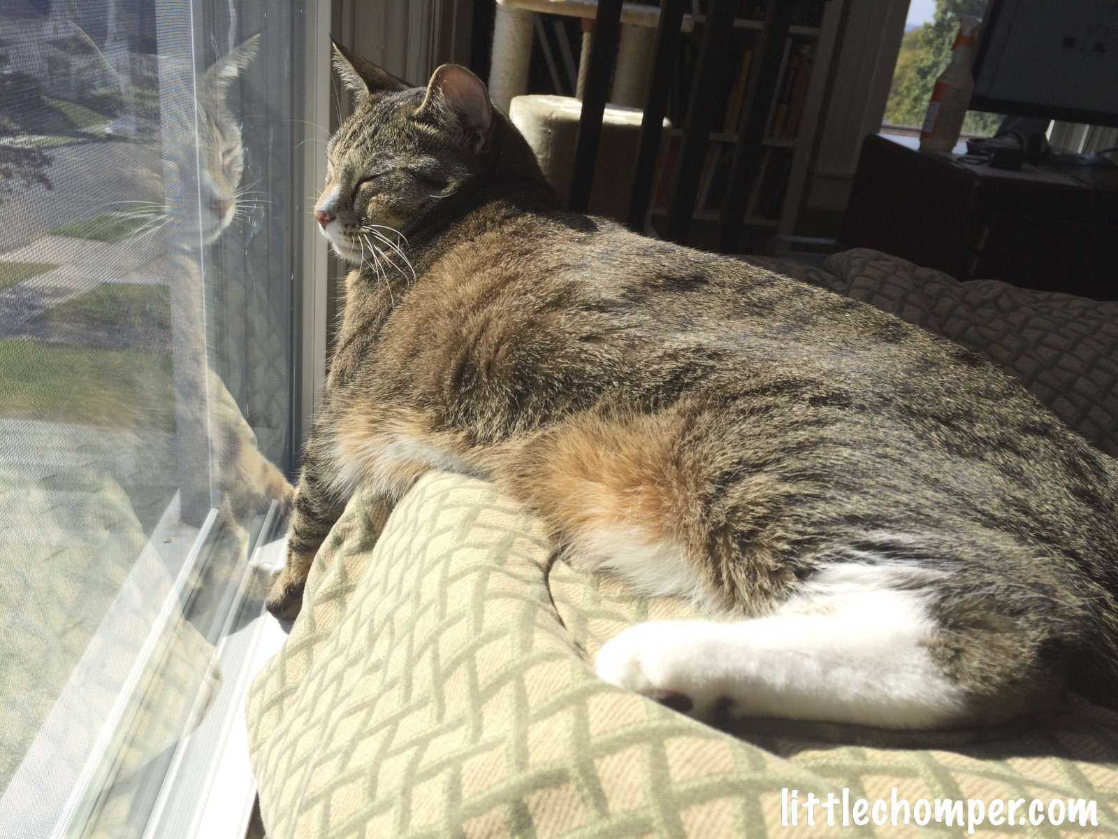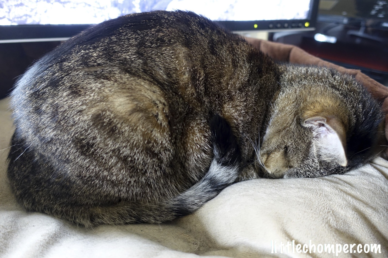 this way, sleeping with all limbs curled up near East window in dining room, in Feb 15 would be