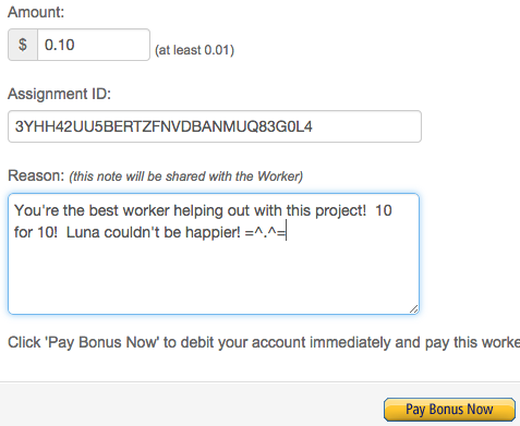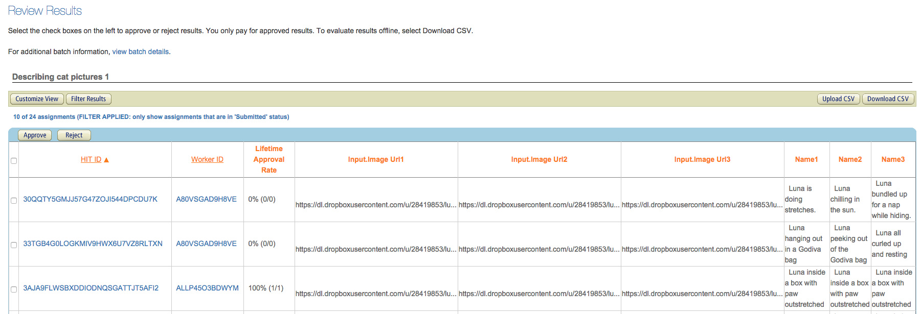 I want good descriptions. Mechanical Turk lets you reject bad results, but that’d be a shame if I had to.