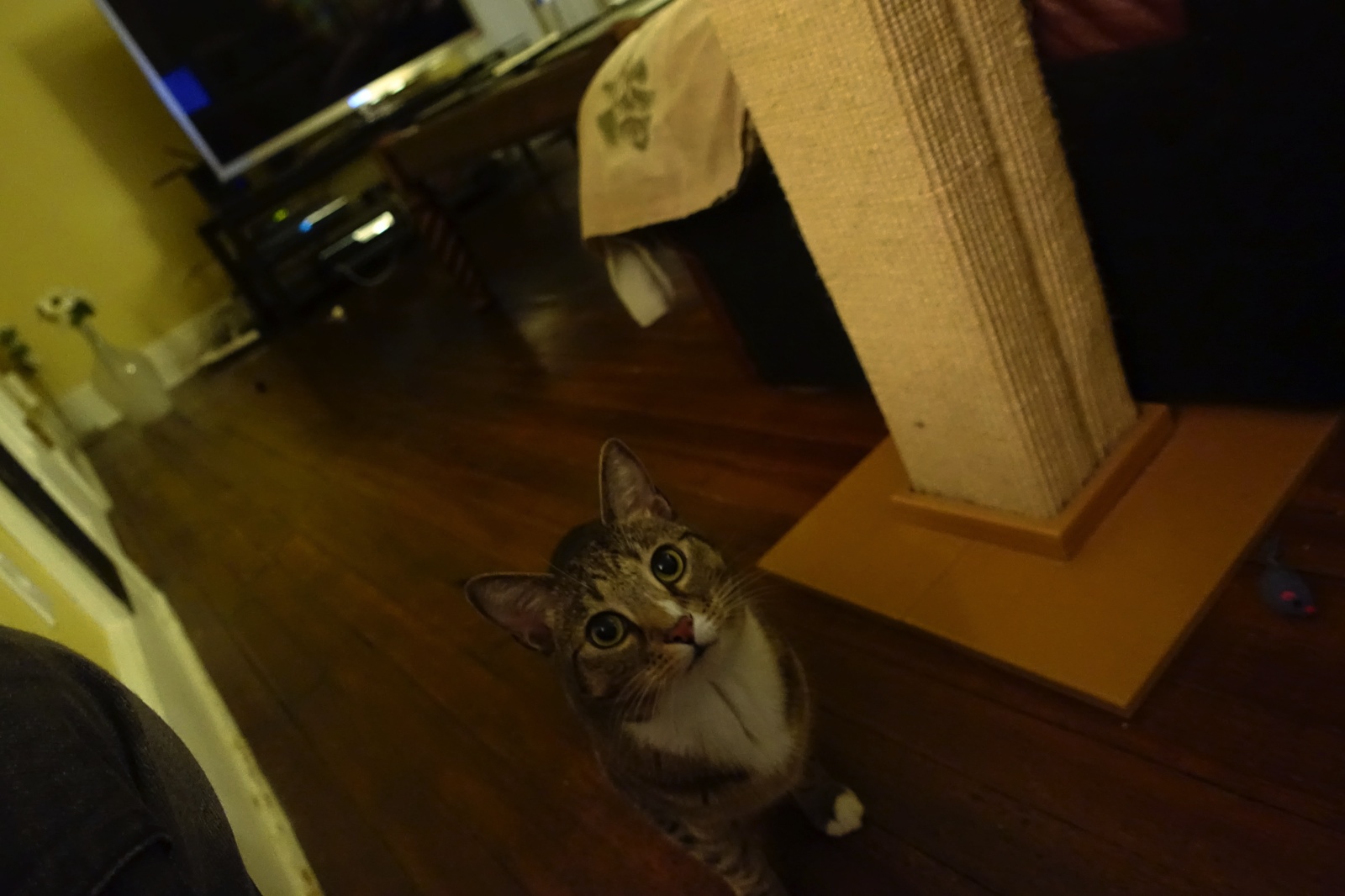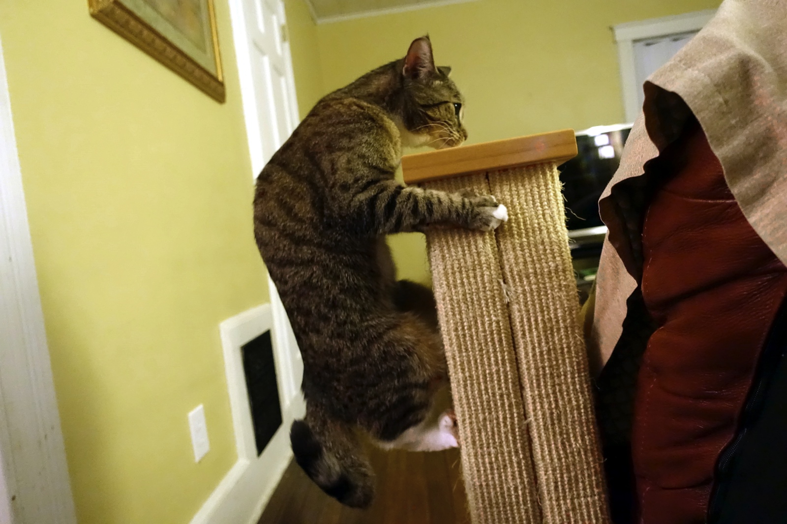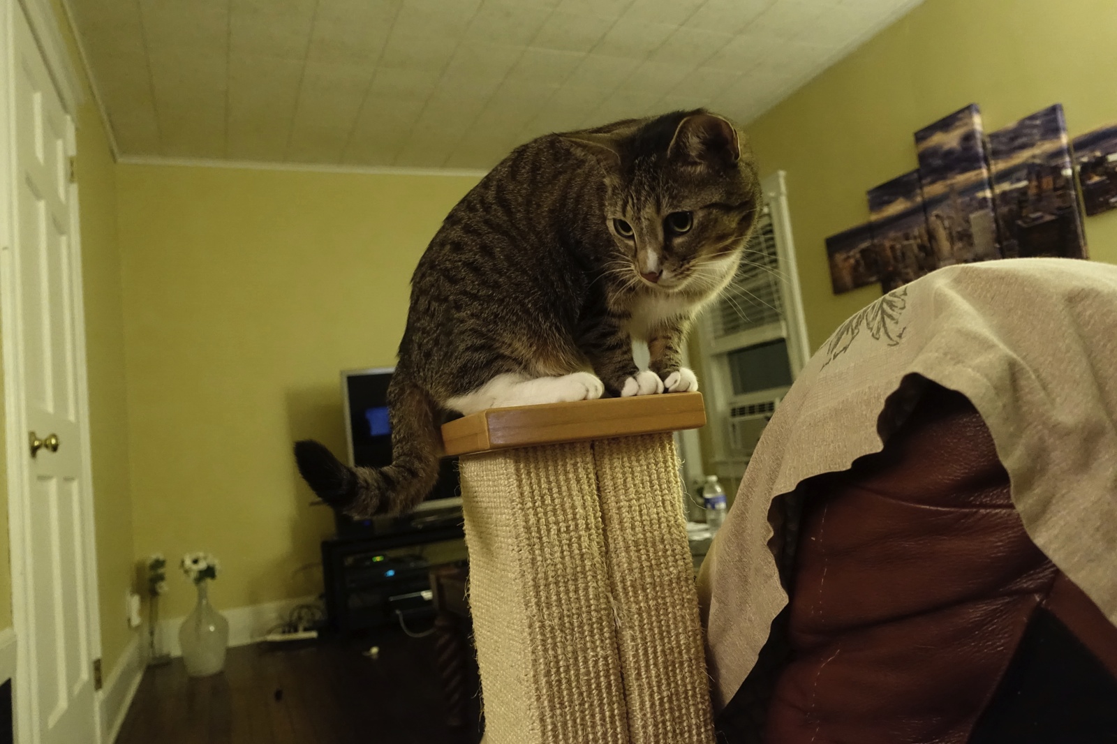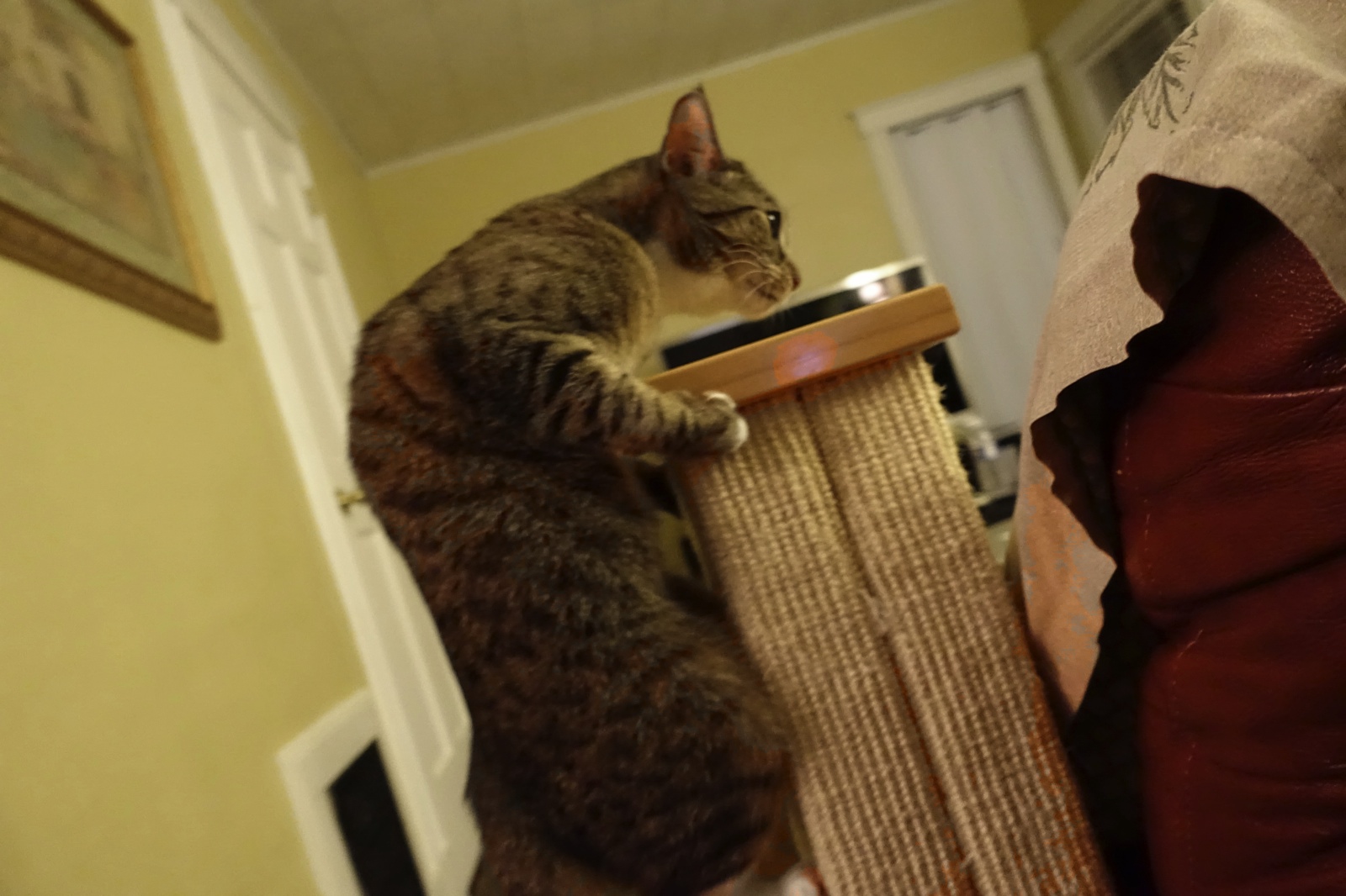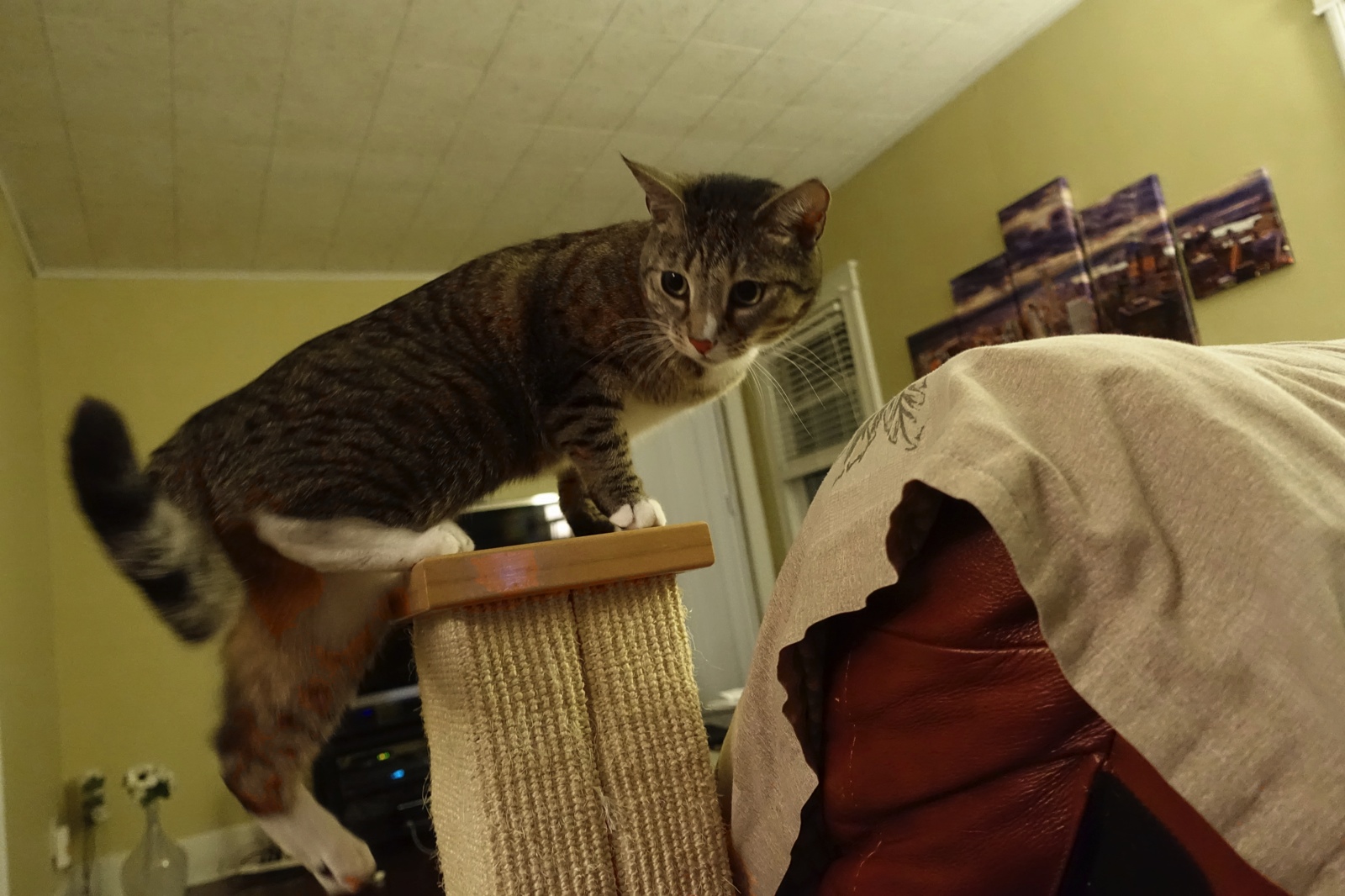 Okay, this is the scratching post. So high! Keep a look out while I investigate!