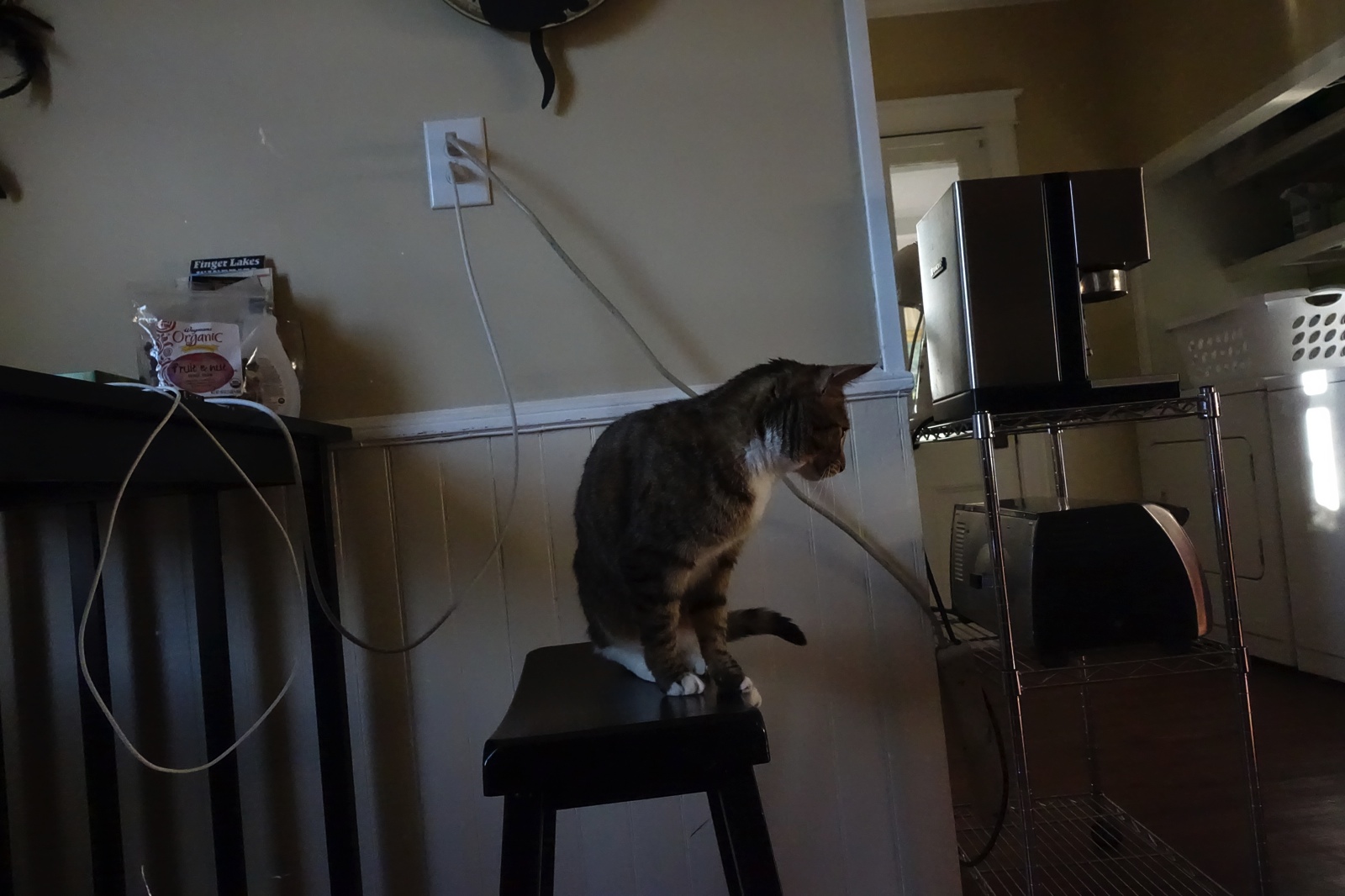 Usually treats are in a bag, in a closed cabinet, but they left one out, and I’m gonna eat it.
