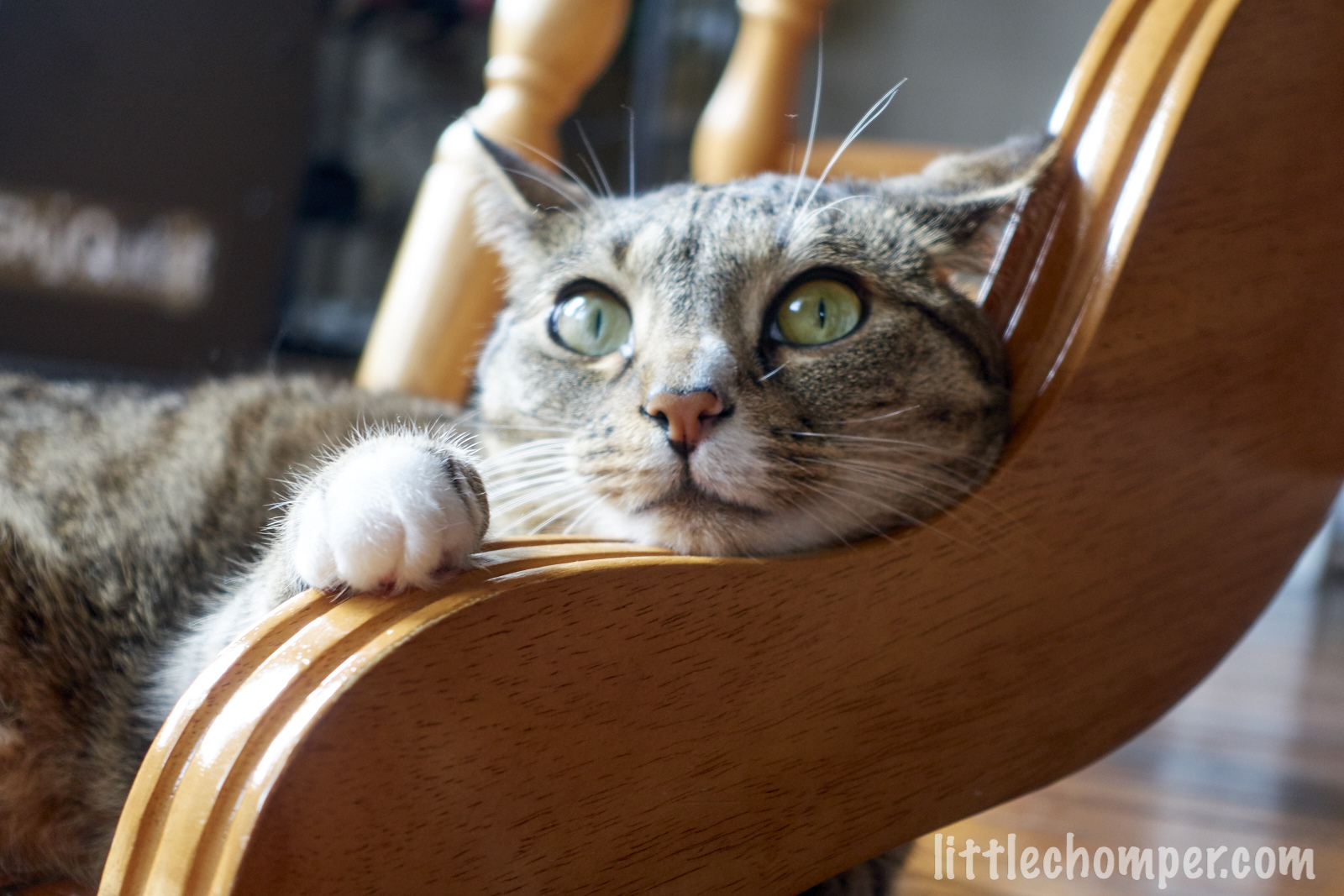 I cannot recommend my blog with my conscience intact, as it is in German, has now and then be dealing with food but mostly with boring human things like politics (mainly local), books, theatre and music … really, it is as boringly human as it sounds, Luna. The only post dealing with my cats was one with a message from their litterbox … Other cats go lazy and use their humans cameras – mine pee into their litterbox and I know exactly what they want to say. Mostly P*** off, sometimes, Life is sh.. and rarely I get a ❤
